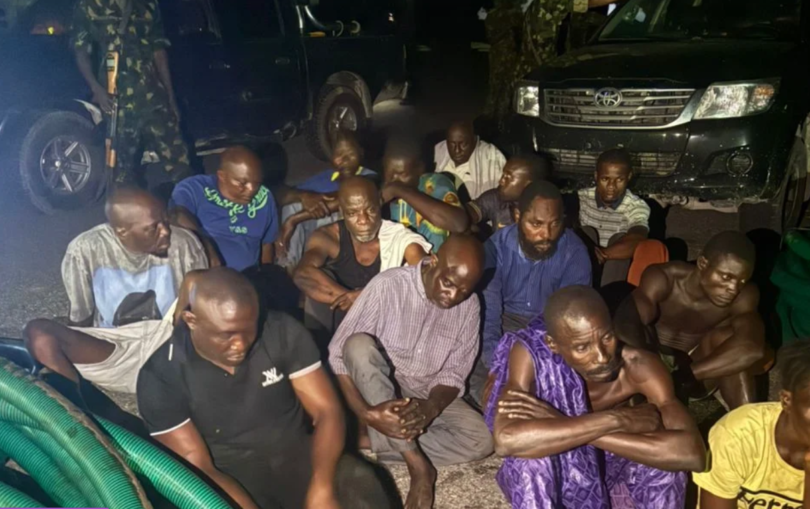 Troops of the Nigerian Army have arrested 15 suspected oil thieves for attempting to siphon crude oil from a vessel supplying the Dangote Refinery in Lagos.